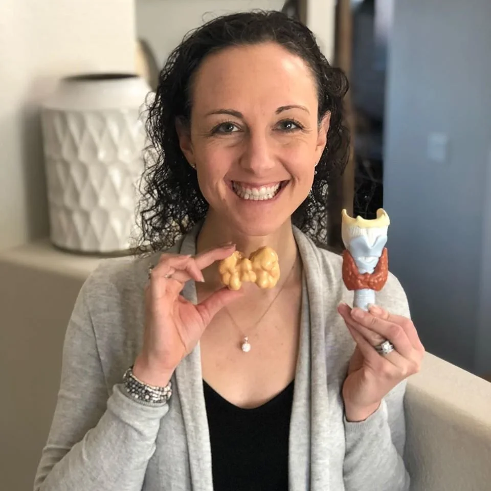 The endocrinologist explained that my thyroid looked like a piece of cauliflower (left) as compared to what a healthy thyroid looks like (right). I purchased my own plastic thyroid set as I set out to advocate for myself and to teach others how to advocate for themselves.